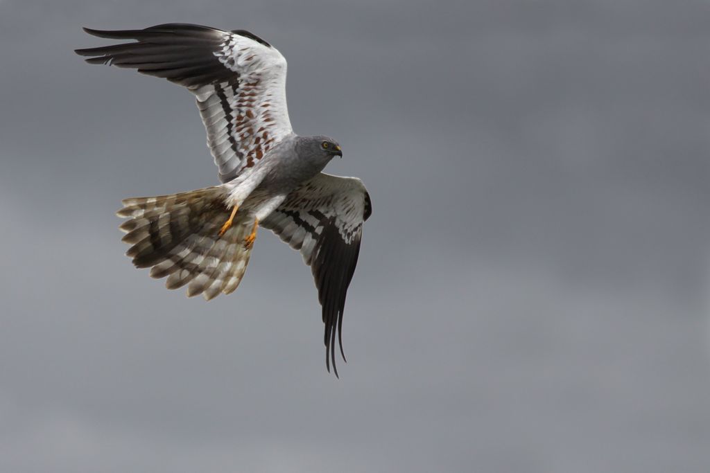 Le Busard cendré se nourrit de petits animaux terrestres, d’une masse habituellement inférieure à 60 g, dont le type varie beaucoup selon la région et l’année. Il peut se spécialiser localement sur la proie la plus abondante, par exemple sur les insectes lors d’années pauvres en campagnols. Les oiseaux, leurs œufs et leurs jeunes sont fréquemment capturés. Il s’agit pour l’essentiel de passereaux nichant au sol, mais des œufs d’oiseaux plus grands (perdrix, canards) peuvent être consommés.