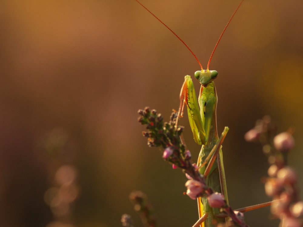 La mante religieuse arbore une couleur allant du vert au brun. La femelle de 5 à 8 cm de long dépasse largement le mâle bien plus petit. Redoutable prédatrice, elle chasse à l’affût, ses deux pattes avant repliées, prêtes à être rapidement détendues pour capturer une proie. Sa position au repos, dressée les pattes avant jointes, lui a valu sa qualification de « religieuse ». Elle vit dans les milieux ouverts bien ensoleillées.